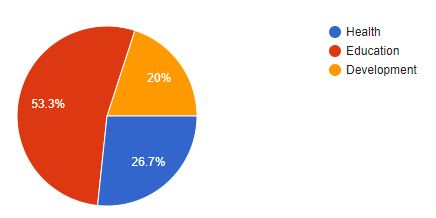 Figure 2: Where poverty affects the most? On Education (53.3%), on Health (26.7%) and on Development (20%).